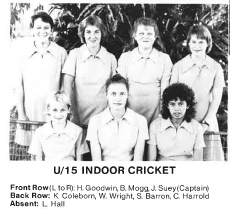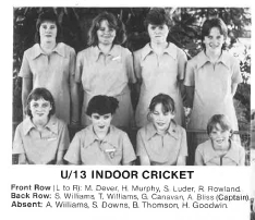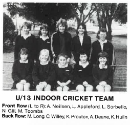 | 1987 | Introduction of Indoor Cricket to Inter School Competition TDSSSA Carnival U15 Premiership, U13 2nd |