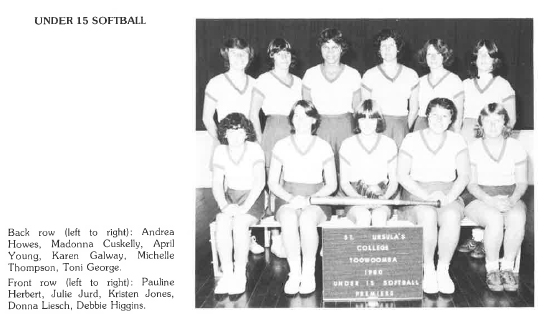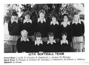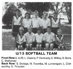 | 1984 | TDSSSA Carnival U15 2nd place, U14 2nd place Darling Downs Regional Competition 2nd place Cecil Plains Competition 2nd place |