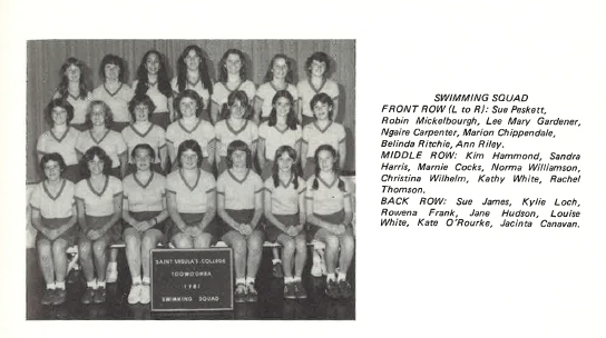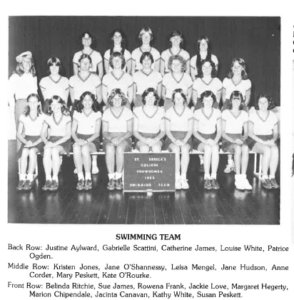 | 1980 | DDSGSSA Swimming Carnival 7th place Duhig & O'Donnell Cup Catholic Girls Carnival 8th place |