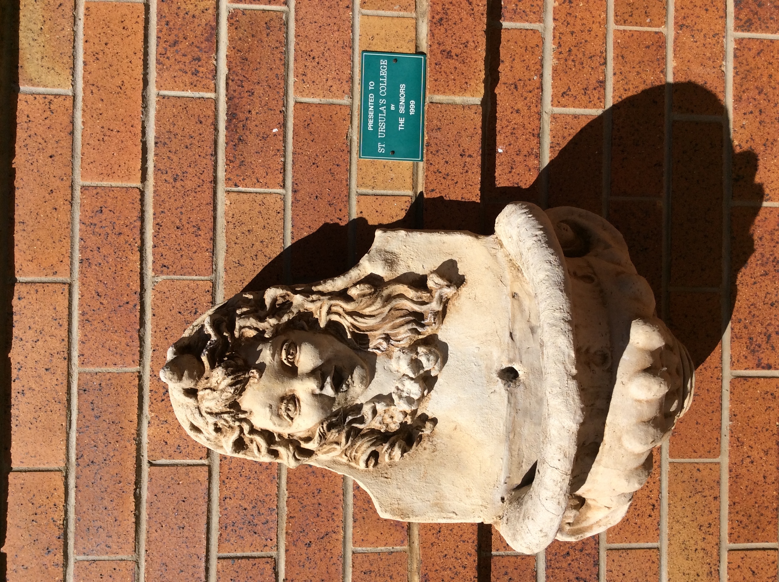 head water feature on wall of entrance to Dance rooms and Girl statue in